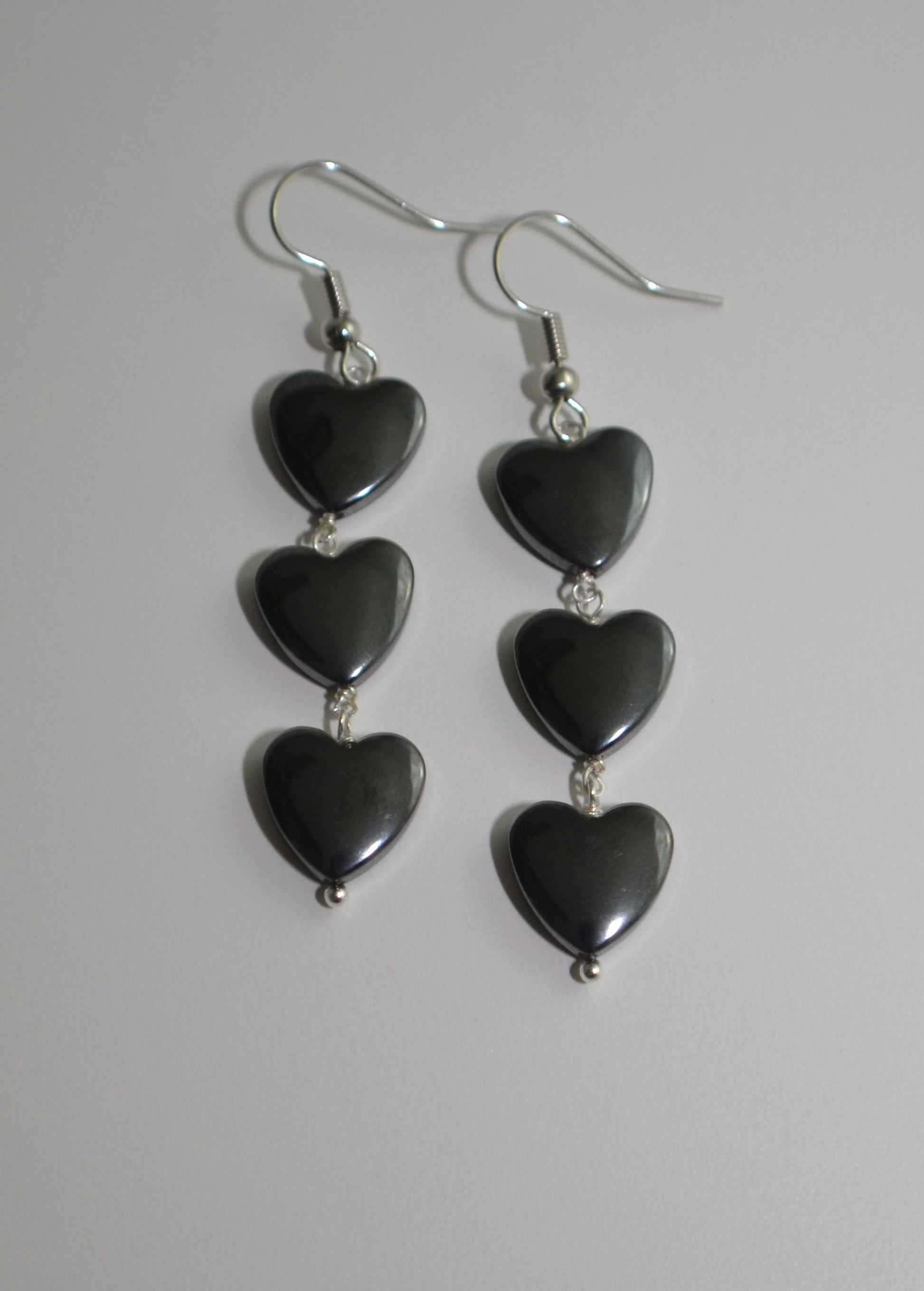 Hematite Heart Drop Earrings