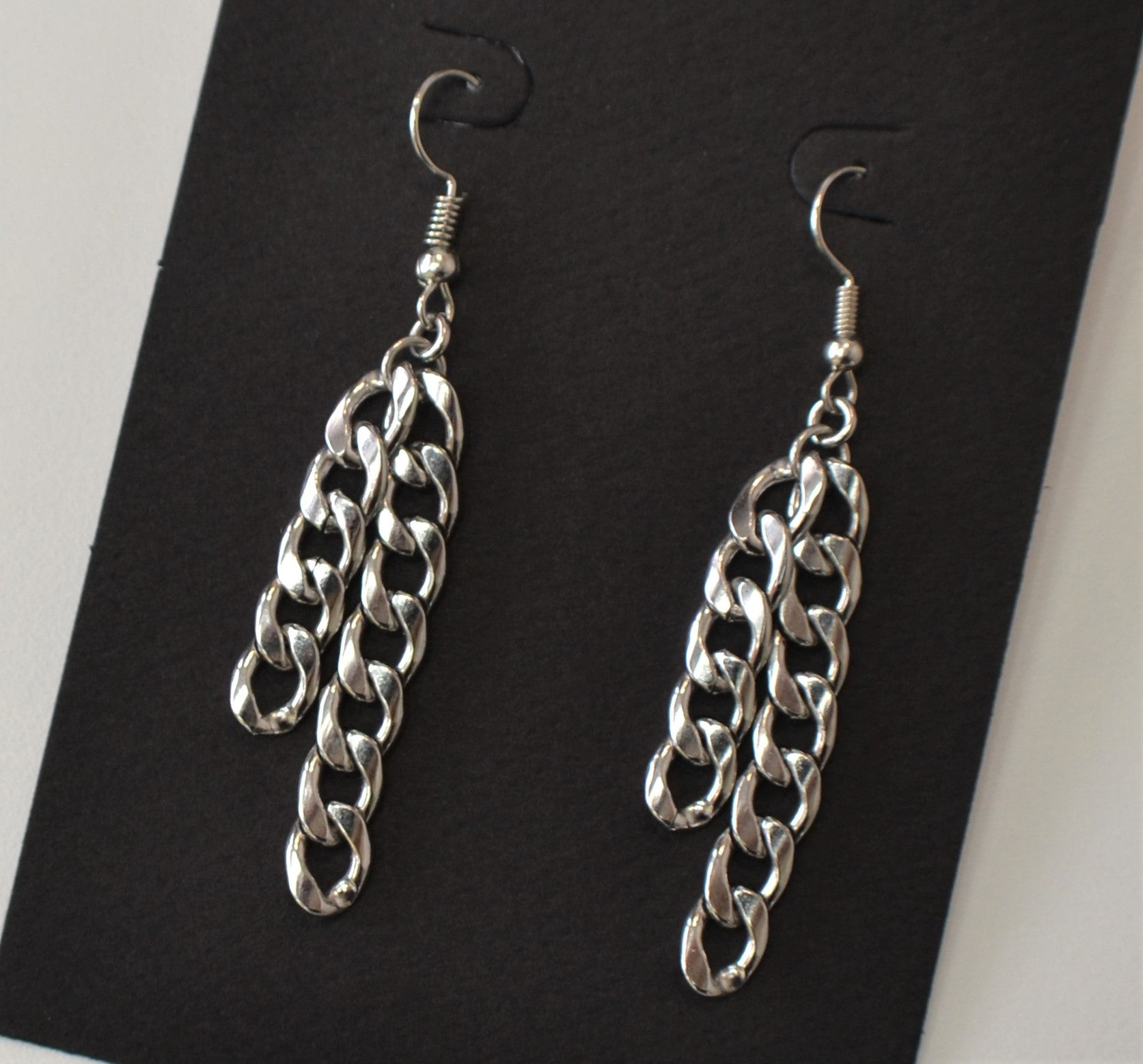 Silver Curb Chain Drop Earrings